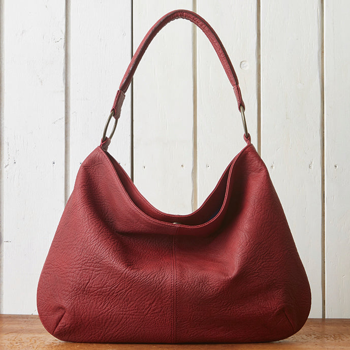 通常の持ち手2本分の芯材を使用しぷっくりと丸くする事で、太めの特徴的なデザインで重い荷物を入れても肩が痛くなりにくくなっています。